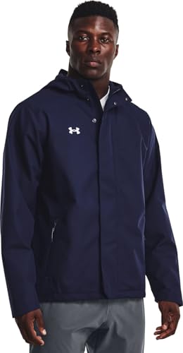 UA’s Storm technology repels water while maintaining breathability. A 2-layer outer fabric with fully taped seams ensures 100% waterproof and windproof protection. The interior woven lining provides extra comfort and warmth. The adjustable front hood offers optimal fit and protection. Secure, zipped hand pockets and a left chest pocket, large enough for a playbook or tablet, are included. ColdGear knit cuffs with built-in thumbholes help keep the cold out, and the bungee-adjustable bottom hem ensures a secure fit.
