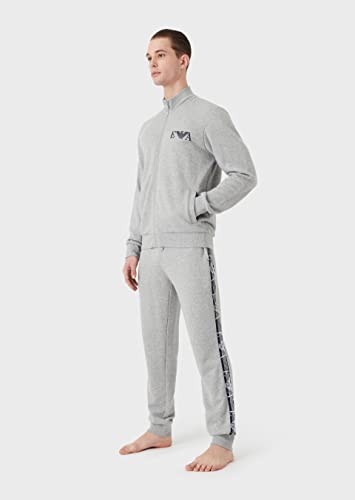 Emporio Armani Men’s Iconic Terry Sweater and Trouser Set, Light Grey Mélange, X-Large
