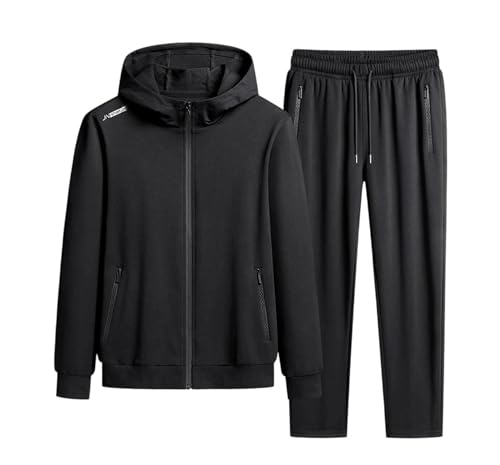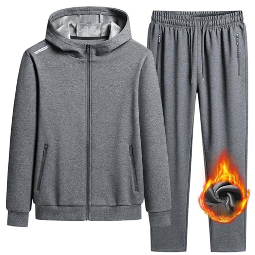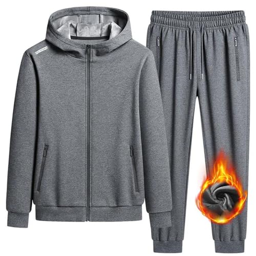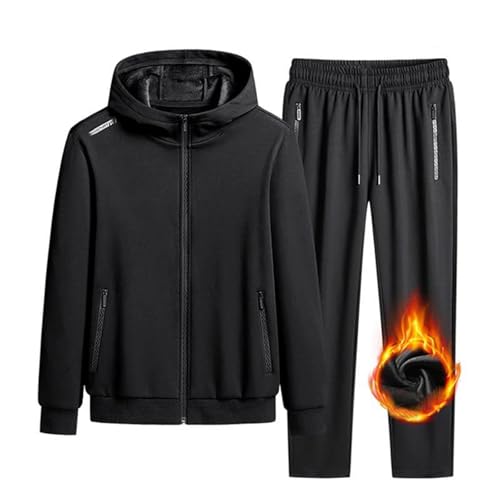 Men’s Fleece Tracksuit Set Hooded Jogger Sportswear Warm Two Piece Sweatpants And Jacket Plus Size