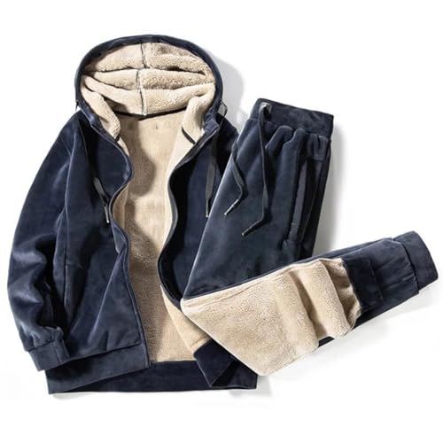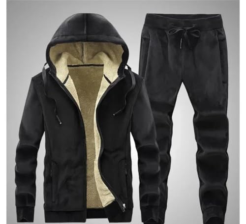 Men’s Thermal Tracksuit Winter Hoodie and Pants Set Thick Fleece Two Piece Sportswear