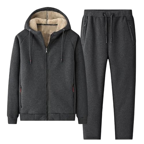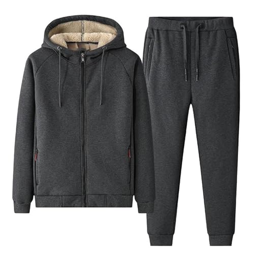 Men’s Winter Fleece Lining Hooded Sweatshirt Jacket And Jogger Pants Set Warm Cashmere Tracksuit 2 Piece