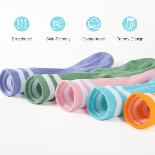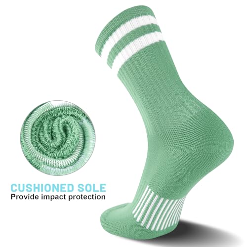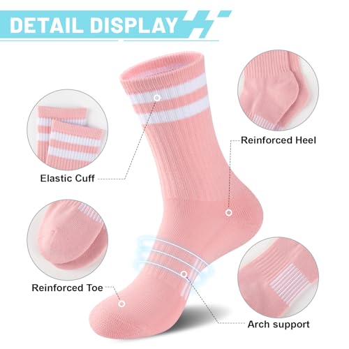 Womens Crew Socks Athletic Running Casual Cushioned Striped Calf Sock for Women 5 Pairs