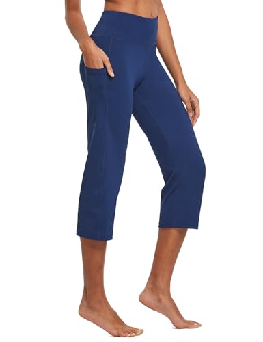baleaf Womens Yoga Capri Pants High Waist Capri Leggings with Pockets Wide Leg Crop Exercise Workout Summer Pants