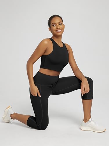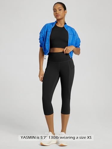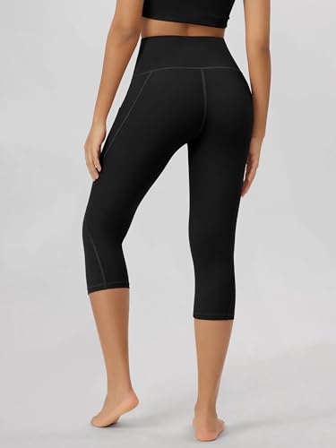 ODODOS Women’s High Waisted Yoga Capris with Pockets, Tummy Control Non See Through Workout Athletic Running Capri Leggings