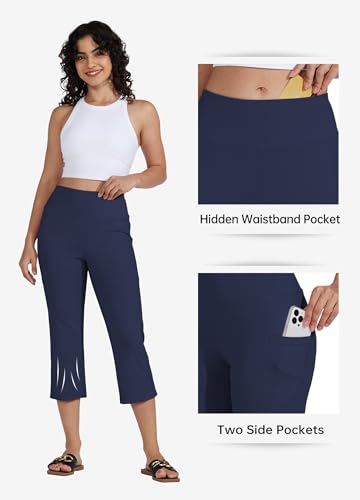 Willit Women’s Yoga Capris Pants High Waist Leggings Crop Straight Leg Athletic Exercise Workout Capris 21″