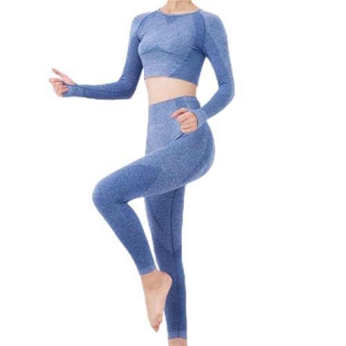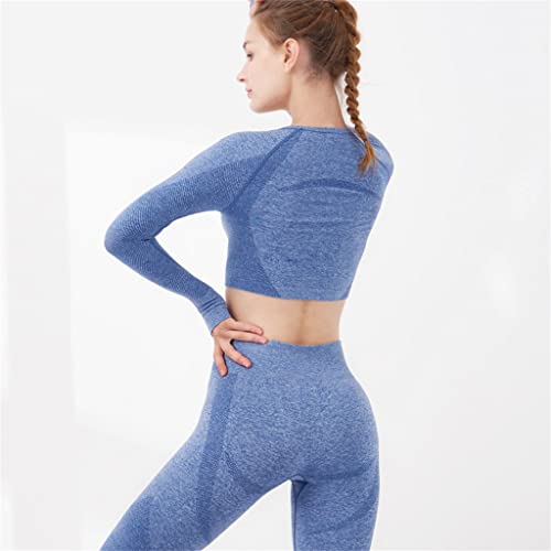 Women’s Yoga Suit Navelless Long-sleeved Fitness Two-piece Seamless Running Sports Suit(Small)