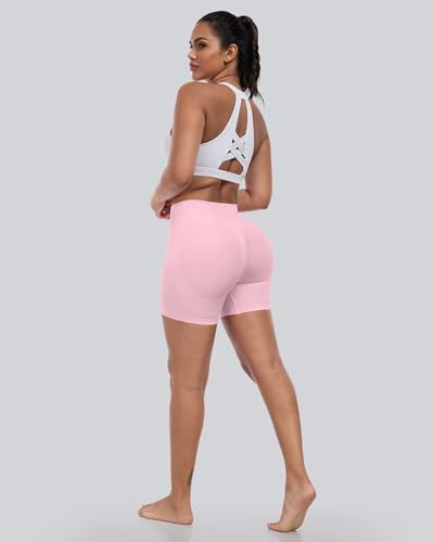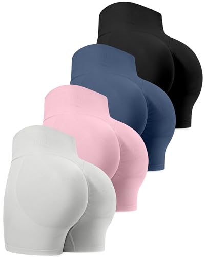 CHRLEISURE Workout Gym Biker Shorts, High Waisted Butt Lifting Scrunch Butt Sports Seamless Shorts Sets 4 Piece