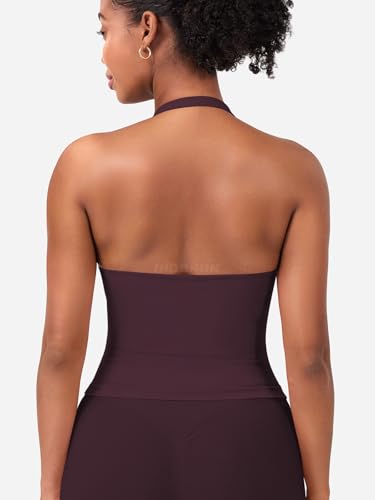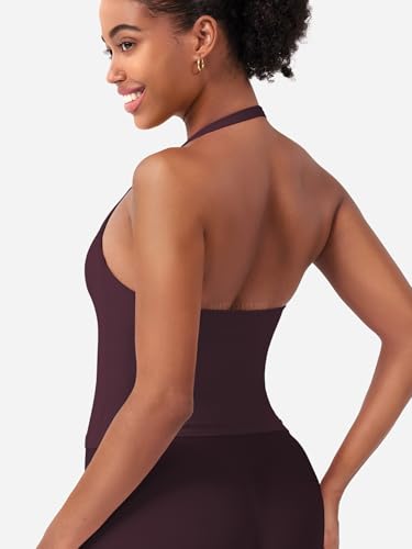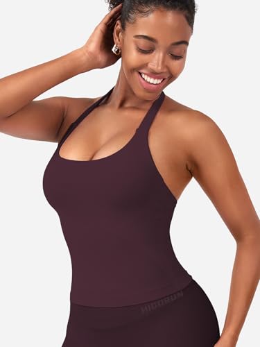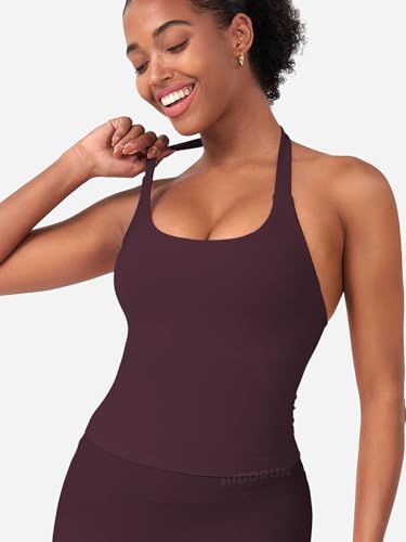 HIGORUN Halter Impact Tank Tops for Women Y2K Workout Longline Crop Tops with Built in Bras Open Back Going Out Gym Top