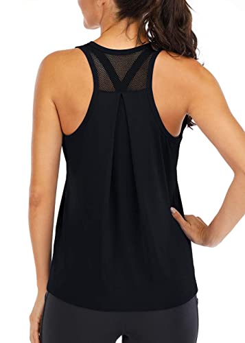 ICTIVE Workout Tops for Women Loose Fit Racerback Mesh Backless Muscle Tank Running Shirts