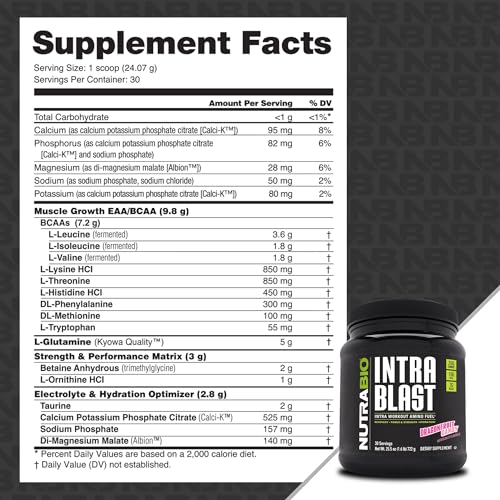 Specification: NutraBio Intra Blast Bcaa Powder Amino Acid Supplement, Electrolyte & Hydration Blend, Intra, Pre Workout & Muscle Recovery, 20g Eaa Amino Acids Powder, 5g Glutamine- Dragonfruit Candy, 30 Serving
