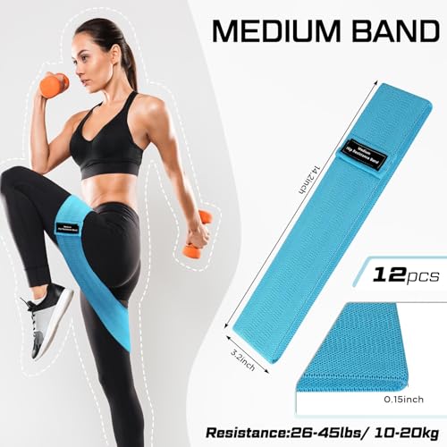 12 Pcs Fabric Resistance Bands for Working Out Booty Workout Stretch Exercise Bands Non Slip for Legs Squat Resistance Loop for Women Men Starter Butt Hip Thigh Fitness
