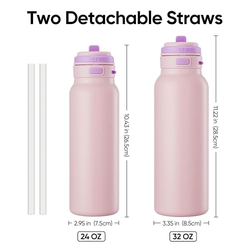 【IDEAL SIZE FOR EVERYDAY HYDRATION】Designed for adults on the move, the 24 oz/32 oz capacity strikes the perfect balance between portability and hydration. Whether you’re heading to the gym, commuting, or hiking, this insulated water bottle fits most car cup holders and backpack side pockets for effortless carry.