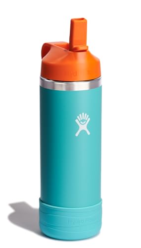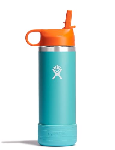 Hydro Flask Kids Water Bottle for School – Stainless Steel and Insulated with Straw Cap – 18 Oz in Seaspray Blue