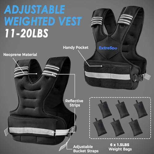 ExtreSpo Adjustable Weighted Vest for Women and Men, 4-10lb/11-20lb/20-32lb Weight Vest with 6 Ironsand Weights, Body Weight Vest Exercise Set with Reflective Strip for Strength Training and Workout