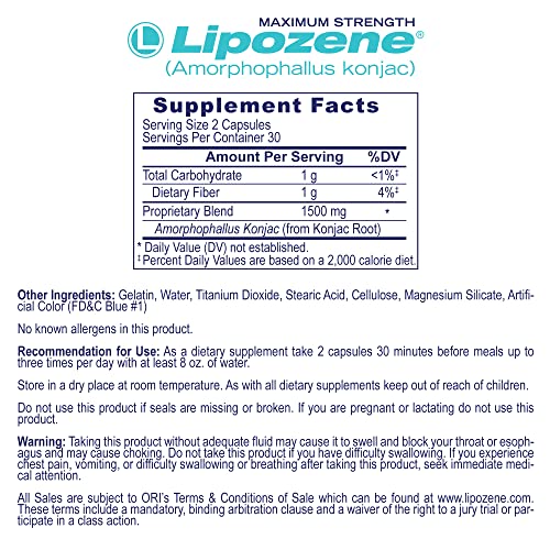 Specification: Lipozene Weight-Management Fiber Supplement, 60 Capsules | Non-Stimulant Glucomannan Formula for Healthy Lifestyle Support