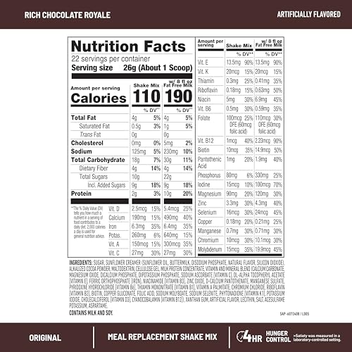 Specification: SlimFast Meal Replacement Powder, Original Rich Chocolate Royale, 10g of Protein, 22 Servings (Packaging May Vary)