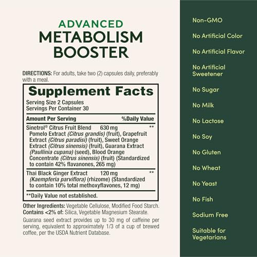 Specification: Nature’s Bounty Advanced Metabolism Booster, Helps Support Healthy Metabolism & Fat Loss, 60 Capsules