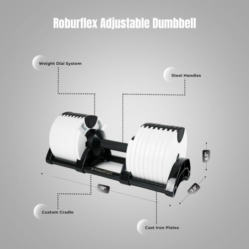 ROBURFLEX Adjustable Dumbbell (Single) 5-40/80lb, 5lb Increments, for Home Gym Fitness – Upto 20 weight settings