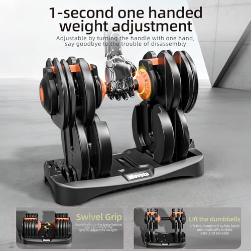 【1-second one handed weight adjustment】Simply rotate the handle with one hand to easily adjust the weight, bidding farewell to the hassle of disassembly and assembly, and achieving twice the result with half the effort in exercise!