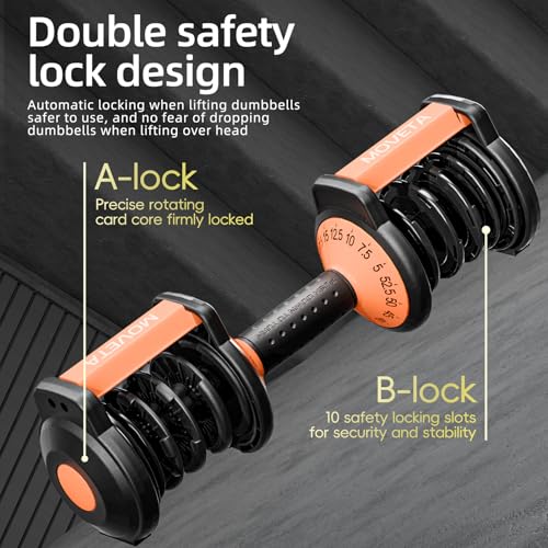 【Double safety lock design】A/B two safety lock design, automatically locked when lifting dumbbells, safer to use, no need to worry about dumbbells falling off when lifting over the head