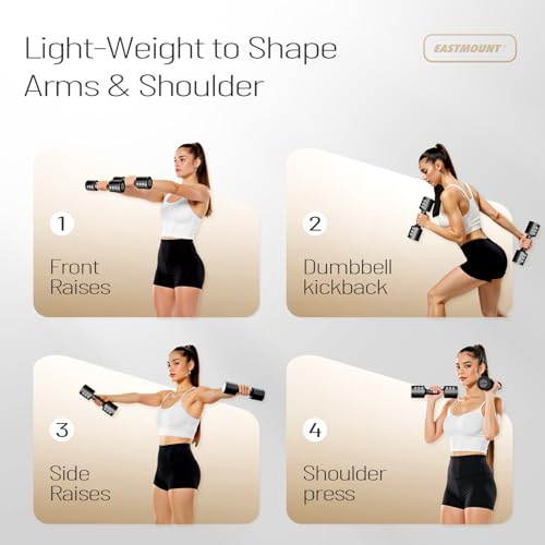 EAST MOUNT Adjustable Dumbbells 5 lb Dumbbells Set of 2 / Pair 10 lb Total Free Weights 6 in 1 Women Hand Weights for Home,Office,Gym Exercise Training 2lb 3lb 4lb 5lb Fast Adjust