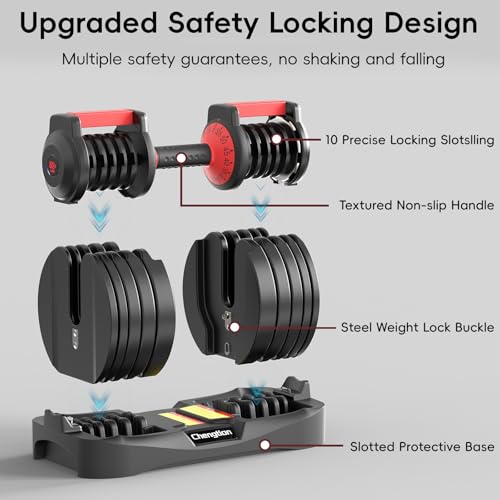 【Double-lock design for safety】Dumbbells must be on the base to adjust the weight. The upgraded handle provides a more secure lock for the weight plates, reducing wobble and preventing them from falling.