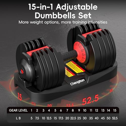 【15 in1 Adjustable Dumbbells】This 2 adjustable dumbbells set you receive allows you to adjust the weight from 5 to 52.5 pounds in 2.5-pound increments, provides a wider and more refined selection of weights for different fitness exercises.