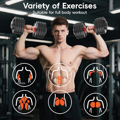 Upgraded Adjustable Dumbbell Set of 2 (52.5 lbs/25 lbs), 15/9 Weights Dumbbell Set, Quick Adjustable Dumbbells For Men and Women Home Gym Workout with Anti-Slip Handle, Safe and No Falling