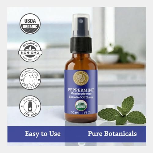 Silk Road Organic Peppermint Essential Oil Spray, USDA Certified, for Nausea, Morning Sickness, Focus & Head Tension – 1 Oz. Aromatherapy Spray