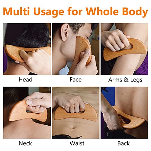 FKYzixeh Lymphatic Drainage Massager, Wooden Gua Sha Tool for Body, Manual Massage Scraper for Anti Cellulite and Relieve Muscle Fatigue, Body Gua Sha Paddle (Style A)