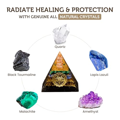 Specification: Tourmaline Orgone Pyramid Charged for Wealth, Happiness, and Good Fortune, Genuine Crystals and Healing Stones, Malachite, Lapis Lazuli, Amethyst, orgonite Chakra Pyramid Crystal, Energy Generator