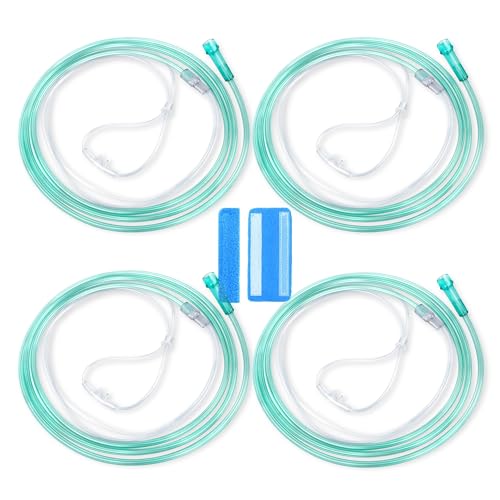 7 Foot Green Nasal Cannulas for Oxygen, Standard Kink Resistant Cannula Nasal Tubing for 0xygen – 4 Pack Oxygen Cannula with 1 Pair Ear Cusions