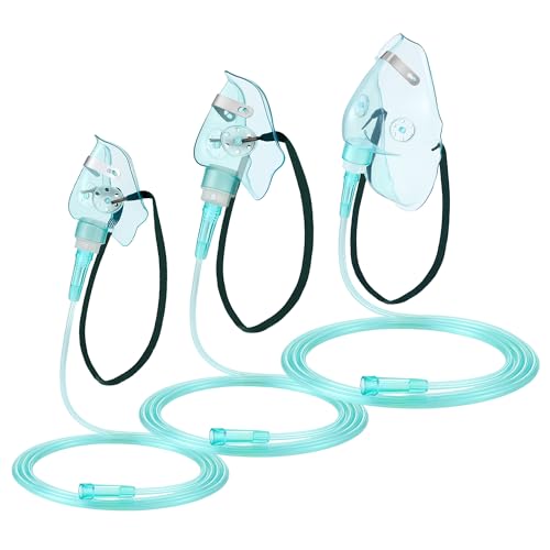 Geiserailie 3PCS S/M/L Size Oxygen Mask for Adult with 6.6 Ft Tubing and Adjustable Elastic Strap, Adult Oxygen Mask with Tubing for Connecting