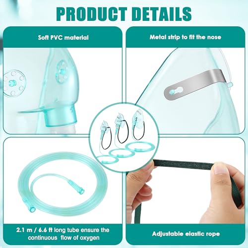 Thoughtful Design: The adult oxygen mask comes with an adjustable elastic headband that suits different head sizes, ensuring a safe, comfortable fit without slipping. It is further enhanced by a malleable nose clip that allows for precise adjustment of the nose profile, proper sealing to ensure optimal oxygen delivery, and a 7 foot anti kinking tube that allows for barrier free movement and consistent oxygen flow; This feature also helps prevent oxygen leaks, maximizing efficiency